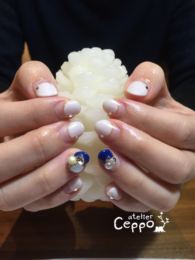お客様ネイル by nms0121 on 2016年1月23日 in 未分類 • 0 Comments こんばんは。アトリエceppoのミキです。 先日、ブライダルのお客様のネイルをしました。 ドレスが青色との事だったので、ネイルにもブルーを入れました。 シンプルネイルにポイントでビジュー盛りをしました。 ホワイトの部分も細かいパールが入っているので、とても綺麗ですよ。 ありがとうございました。