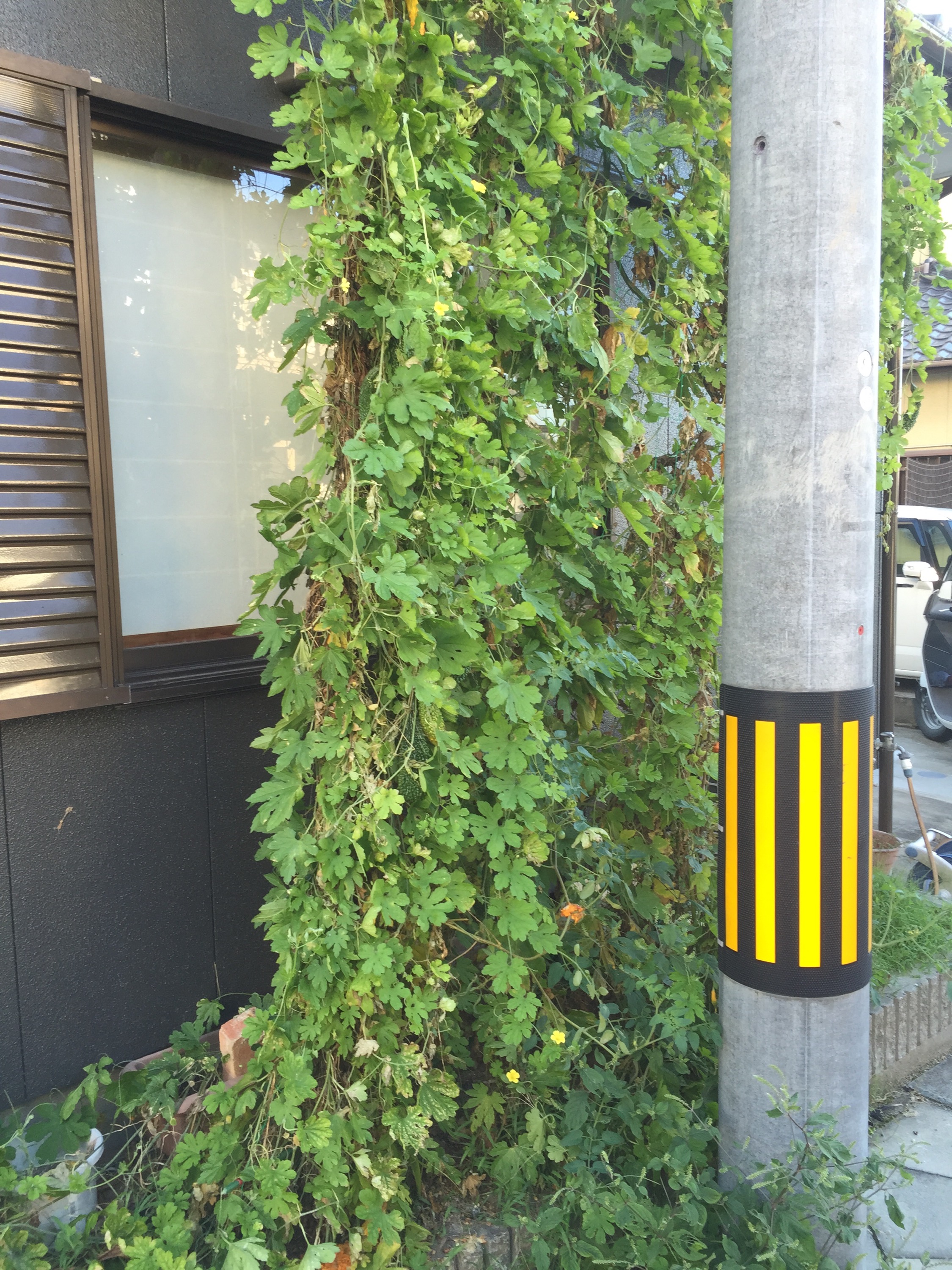放置プレイすると屋根の上で実はなるし、バイクには絡まるし、 そろそろ限界やろ。ってことで