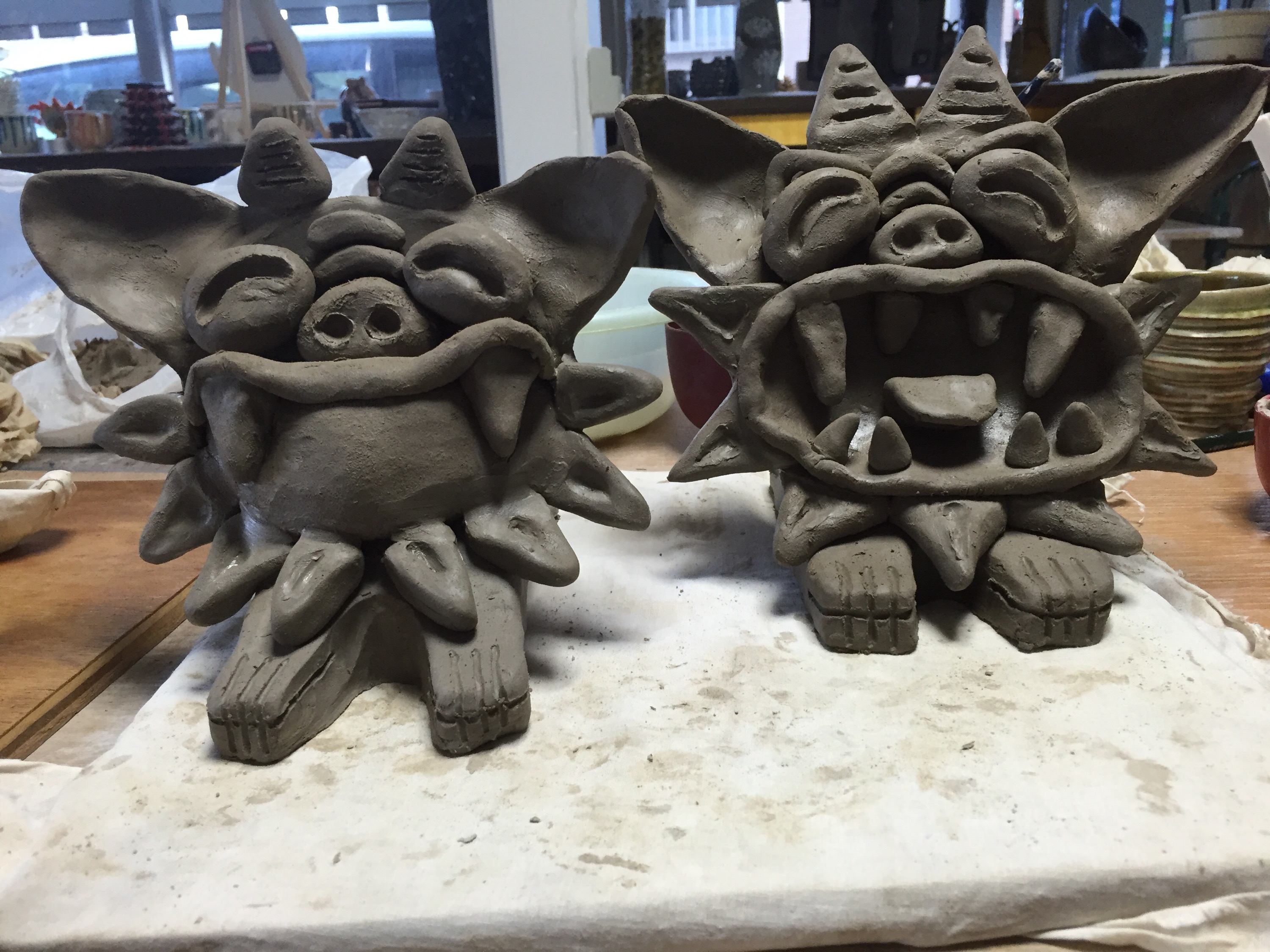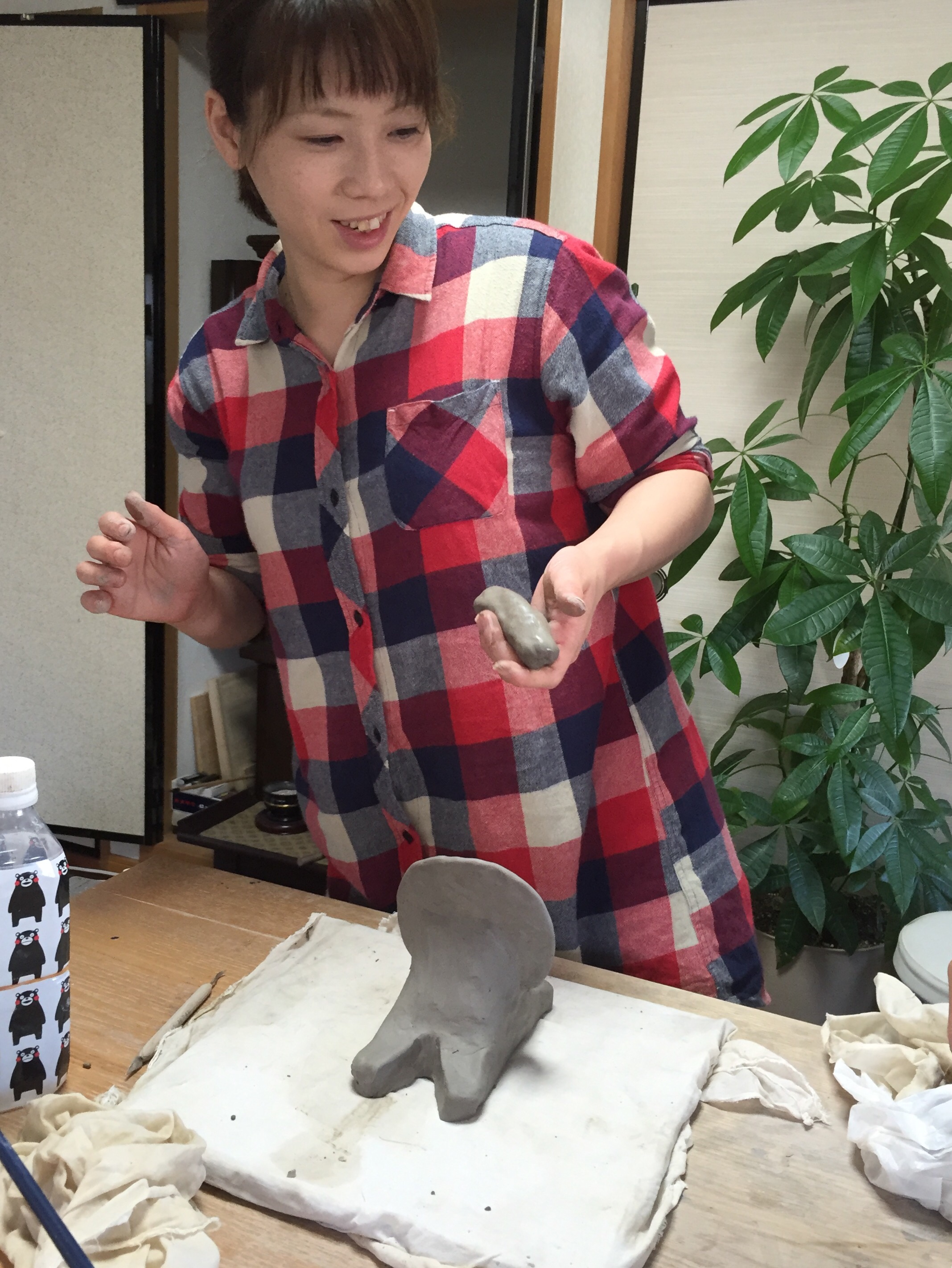 一生懸命、シーサーのメスを作ってます。