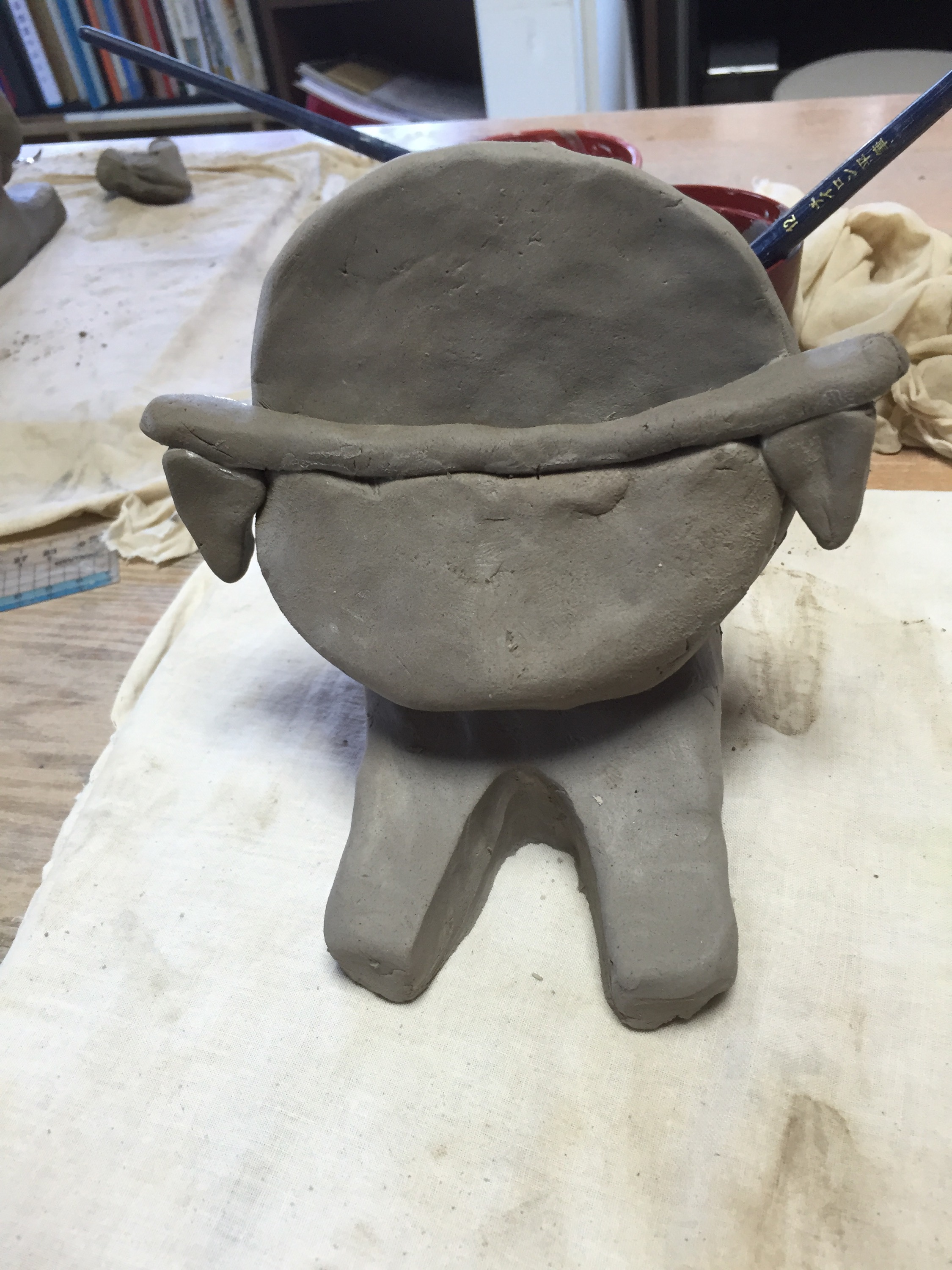 シーサーの土台は初めから作ってあるのであとは色々なパーツを作りくっ付けてシーサーにして行くという事です