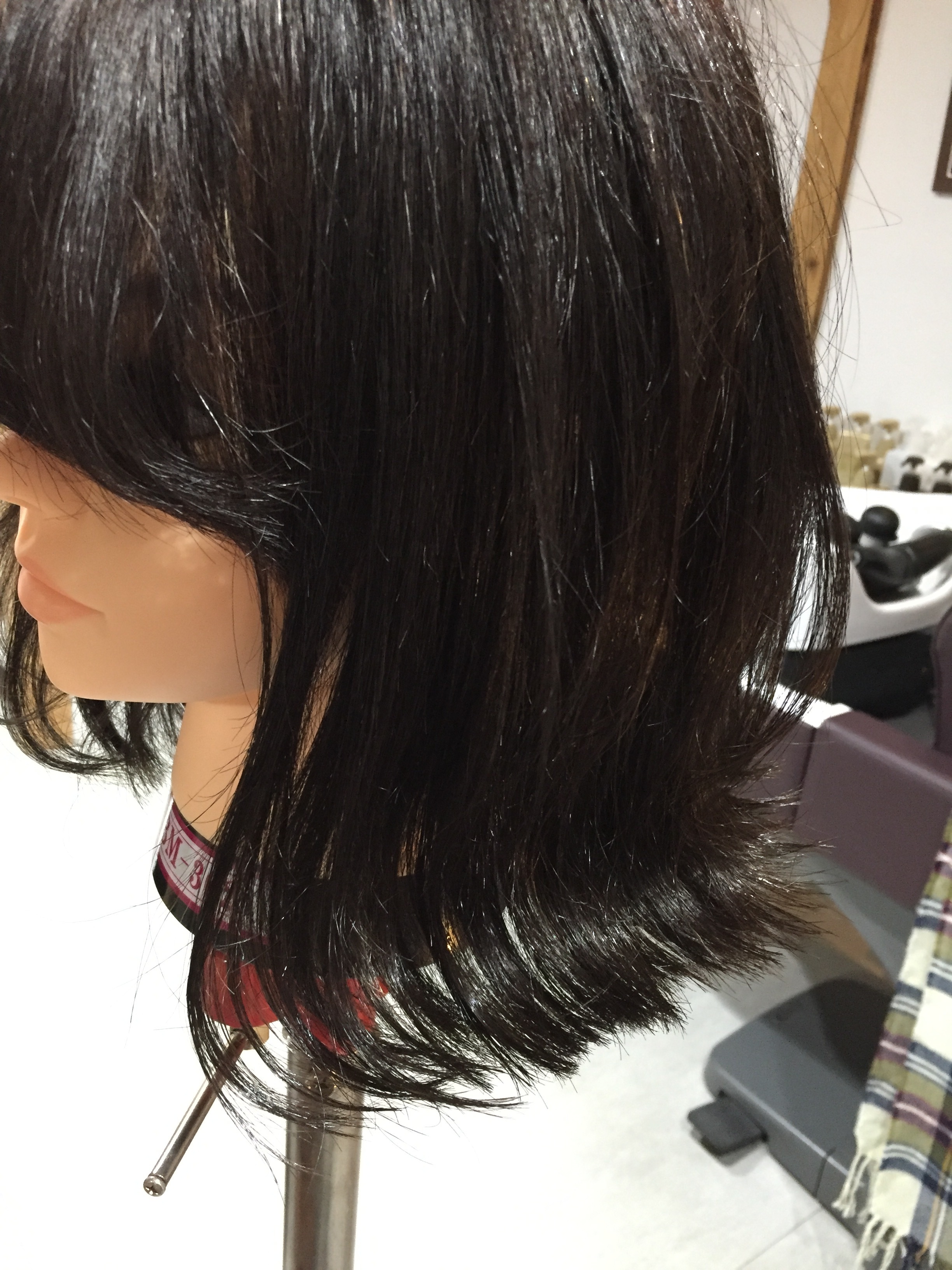 ウィッグ(マネキン)でカット練習。